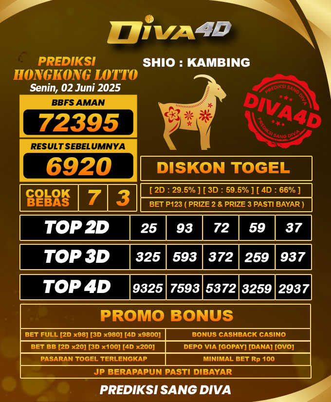 DIVA4D PREDIKSI HONGKONG LOTTO TOGEL HARI: 02 Jun 2025