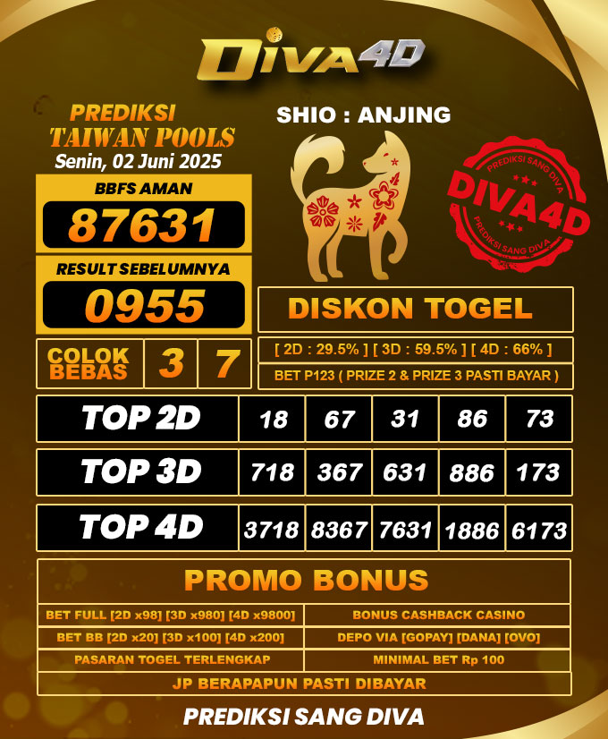 DIVA4D PREDIKSI TAIWAN TOGEL HARI: 02 Jun 2025