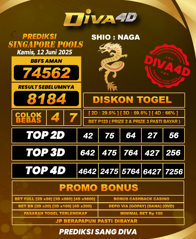 DIVA4D PREDIKSI SINGAPORE POOLS TOGEL HARI: 12 Juni 2025