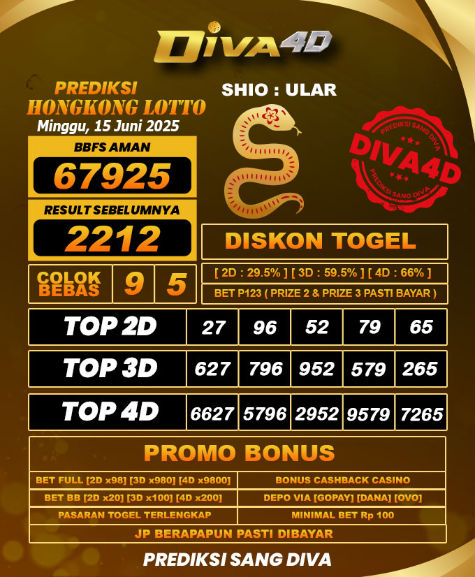 DIVA4D PREDIKSI HONGKONG LOTTO TOGEL HARI: 15 Juni 2025