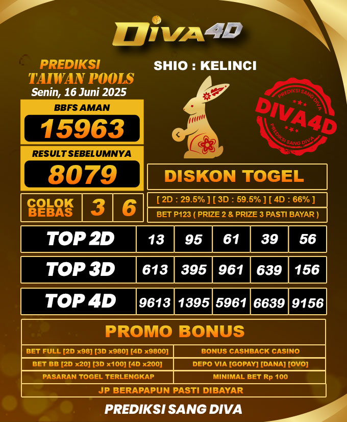 DIVA4D PREDIKSI TAIWAN TOGEL HARI: 16 Juni 2025