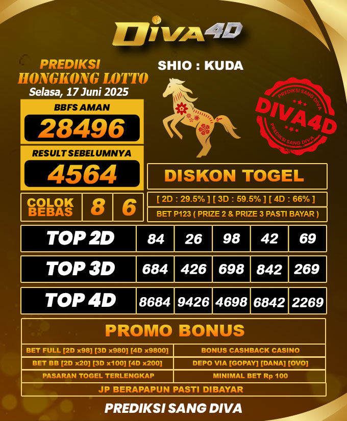 DIVA4D PREDIKSI HONGKONG LOTTO TOGEL HARI: 17 Juni 2025
