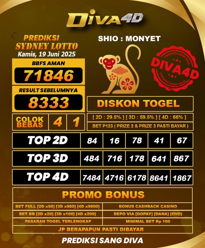 DIVA4D PREDIKSI SDYNEY LOTTO TOGEL HARI: 19 Juni 2025