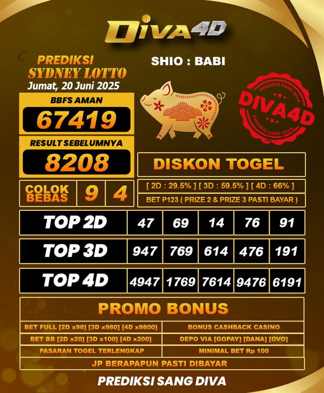 DIVA4D PREDIKSI SDYNEY LOTTO TOGEL HARI: 20 Juni 2025