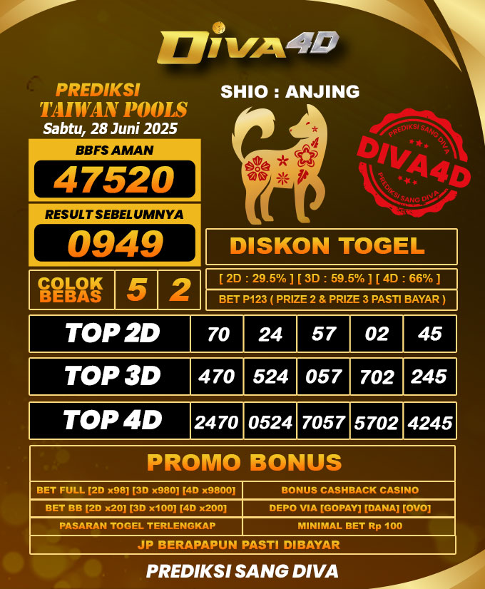 DIVA4D PREDIKSI TAIWAN TOGEL HARI: 28 Juni 2025