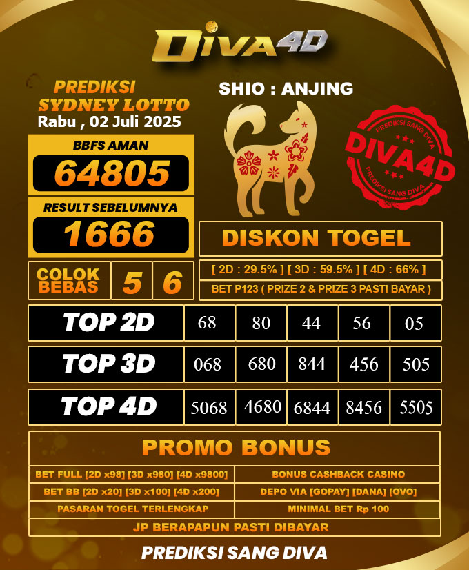 DIVA4D PREDIKSI SDYNEY LOTTO TOGEL HARI: 02 Juli 2025