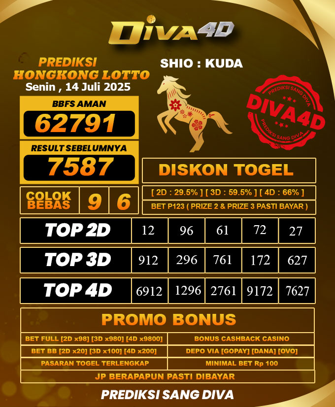 DIVA4D PREDIKSI HONGKONG LOTTO TOGEL HARI: 14 Juli 2025