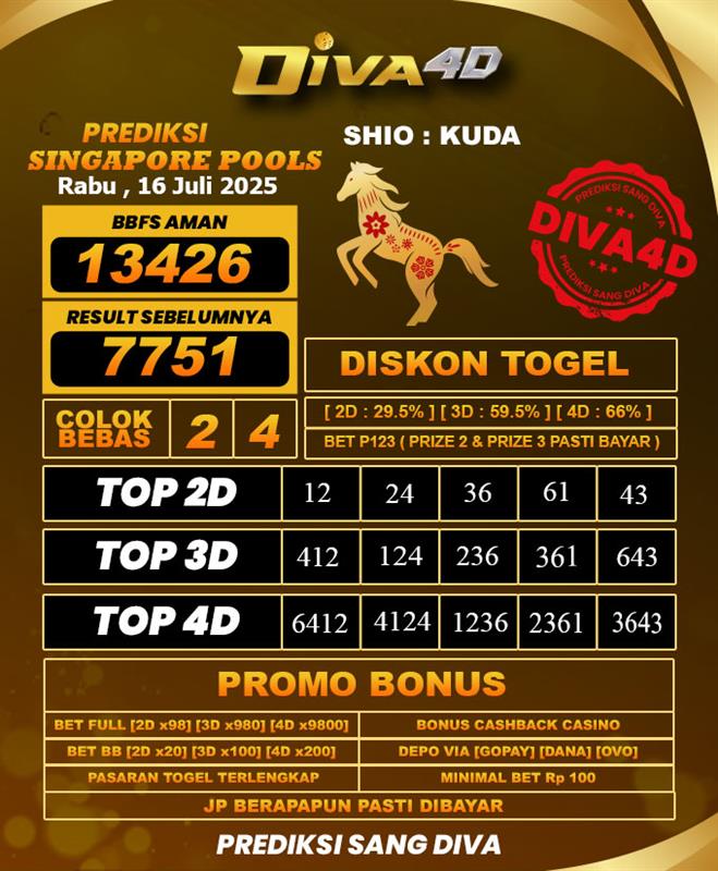 DIVA4D PREDIKSI SINGAPORE POOLS TOGEL HARI: 16 Juli 2025