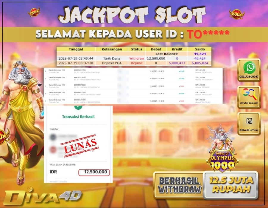 DIVA4D JACKPOT SLOT GATES OF OLYMPUS Rp.15.000.000,- LUNAS