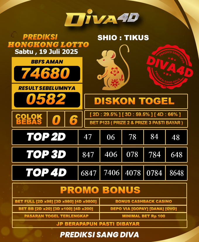 DIVA4D PREDIKSI HONGKONG LOTTO TOGEL HARI: 19 Juli 2025
