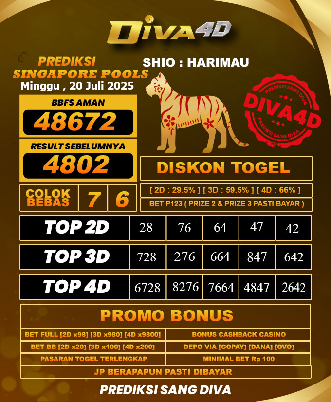 DIVA4D PREDIKSI SINGAPORE POOLS TOGEL HARI: 20 Juli 2025
