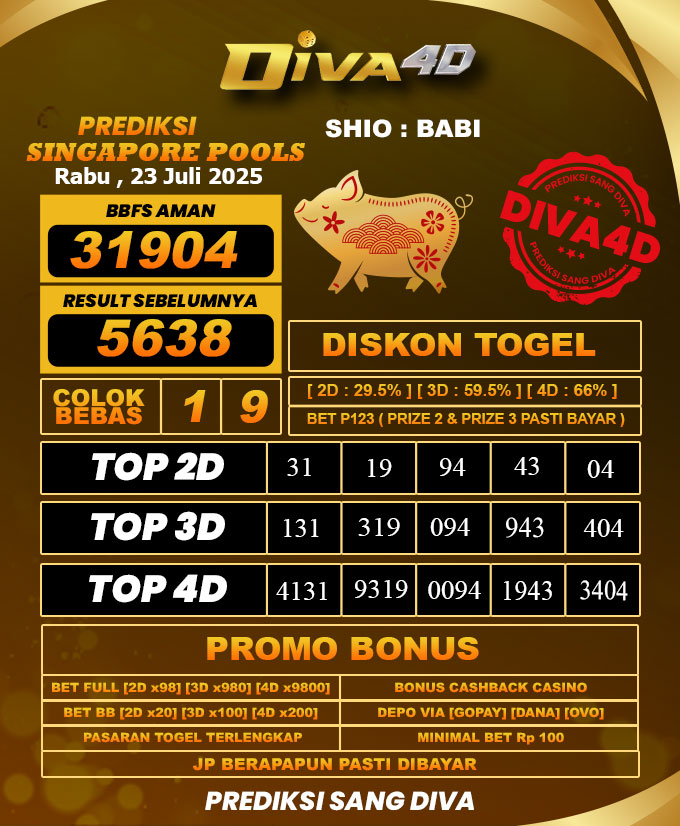 DIVA4D PREDIKSI SINGAPORE POOLS TOGEL HARI: 23 Juli 2025