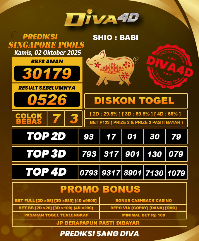 DIVA4D PREDIKSI SINGAPORE POOLS TOGEL HARI: 02 OKTOBER 2025