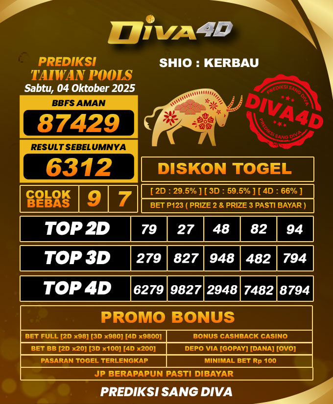 DIVA4D PREDIKSI TAIWAN TOGEL HARI: 04 OKTOBER 2025