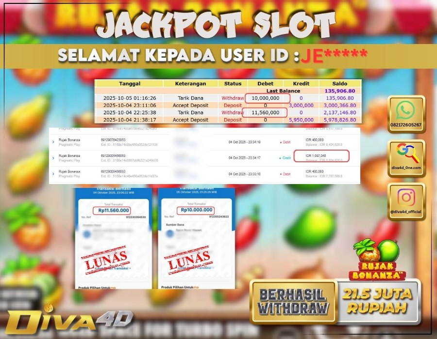 Masih ragu dengan diva4d bos ? Di mana bandar togel online sekarang yang terpercaya seperti diva4d? Bandar yang mengirimkan kemenangan member tanpa bertele – tele. Jadi…. tidak perlu khwatir pada situs diva4d karena kemenangan anda berapapun akan dibayarakan hingga lunas kepada pemenang