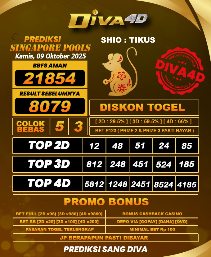 DIVA4D PREDIKSI SINGAPORE POOLS TOGEL HARI: 08 OKTOBER 2025